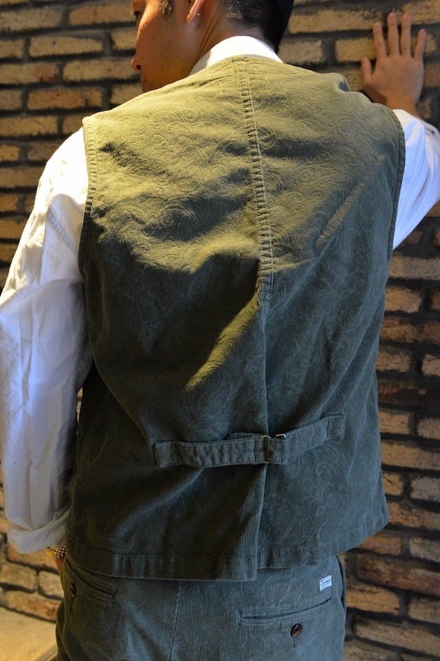 Mens Corduroy vest コーデュロイベスト (カーキぺイズリー) オリーブ,セットアップ対応,日本製, 羽織り, 春秋冬,モノマネー, [CJ008-59]