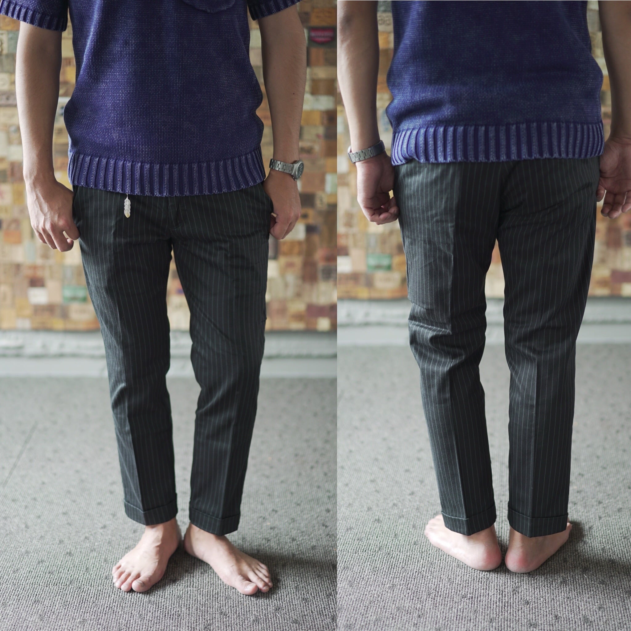 Mens Stripe trousers ストライプトラウザーズ(ブラック×グレー)ストレッチ.日本製 .ラストワン