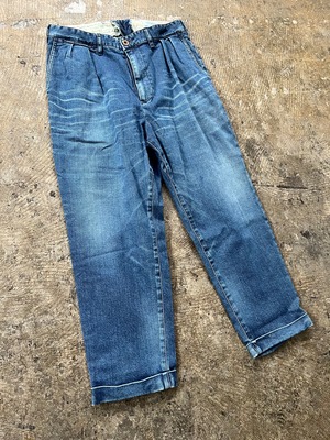 Mens [Mサイズ] 新加工SMOKE BLUE [CM010] 40s Engineer Denim trouser -Wide 2タックデニムトラウザーズ (クロキデニム)一点モノ,